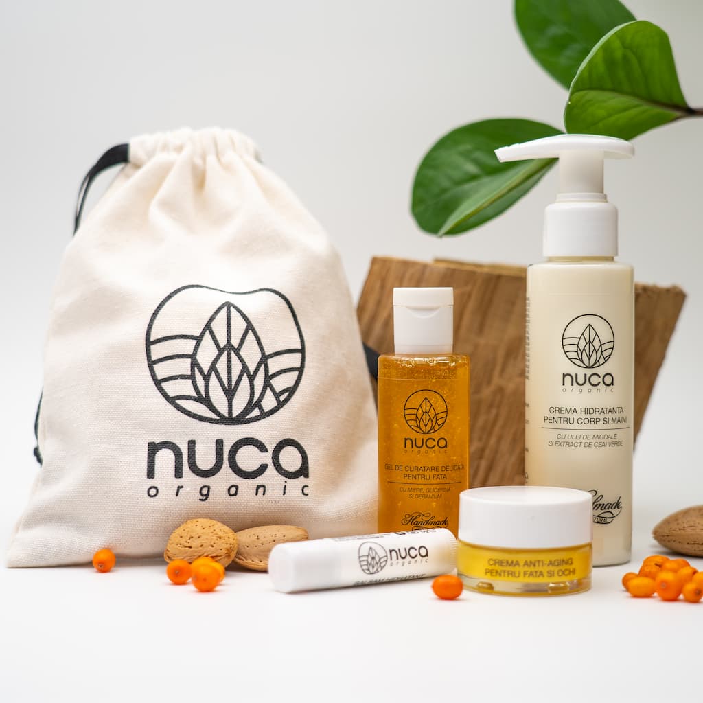 Prima comandă de la Nuca Organic a fost acest set. Sunt foarte încântată de crema de față și de balsamul de buze. Gelul de curățare l-am folosit prea puțin și nu-mi pot exprima părerea despre el, momentan.